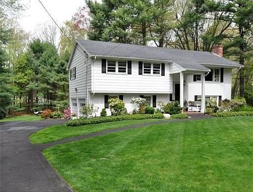 Tranquil setting abutting conservation land and Martha Jones elementary school sits this well-maintained acre oasis. Double tiered deck ideal for entertainment and relaxation. Updated bright kitchen boasts skylight, gas cooking, white cabinets, granite, stainless appliances, lighted glass-front cabinet. New baths, ample closets, new driveway, hardwoods, gas fireplace in stylish ground level family room. Every buyer's dream at a price certain to draw a crowd to this Westwood neighborhood.