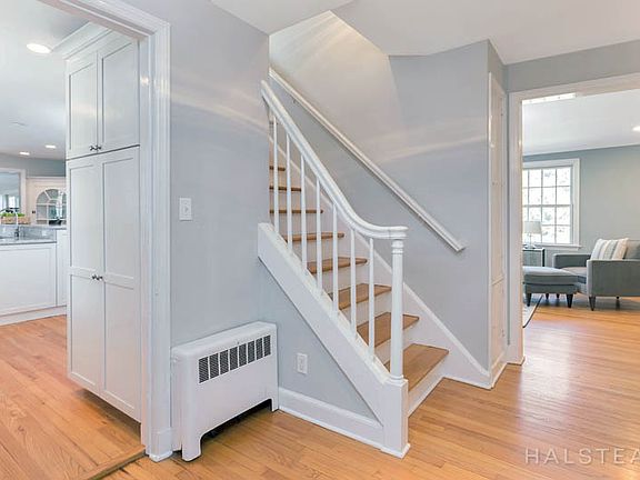 Recently renovated and expanded 5 bedroom, 4 bath home on a desirable street close to everything. Great flow with a spacious, inviting eat-in kitchen featuring stainless steel appliances, top-of-the-line gas range, and Carrera marble counters. Light and bright formal living room with fireplace opens into the dining room with views of the manicured lawn. Family room also has a fireplace and sliding doors to the bluestone terrace. First floor master suite has a generous walk-in closet and bathroom with a double vanity and a soaking tub. The second floor offers 4 bedrooms and 2 full baths, with potential for a master suite, as well as a playroom/bonus room easily accessed by a second staircase. Professionally landscaped yard has a mature privacy hedge. Fabulous home ready for entertaining!