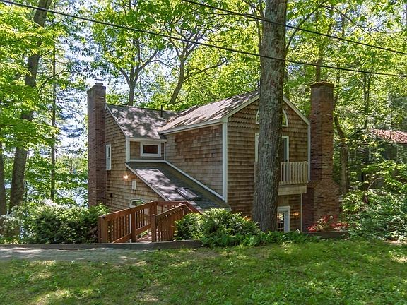 One of a kind ! 73 ft of privately owned water front in Groton with panoramic views of Knopps Pond with 3 wood burning fireplaces and 3 balconies! EAST SIDE of town. Thirty-five miles from Boston! Open concept living at its finest. Eat-in kitchen features a wood-burning oven and is open to the dining room with a picture window and also seamlessly flows over to a fire placed family room which leads onto a deck and overlooks the entire Pond. Renovated 3/4 bath on the first floor. Second floor features 2 nicely sized bedrooms with 2 private balconies, another wood-burning fireplace and a full bath. Lower level is finished with plenty of daylight and additional views of the pond, along with a hook up for a wood-burning stove. House has a 3 bedroom septic system. Such a special property which caters to such a serene lake lifestyle. Call today to book a private viewing. All offers due by 6pm Monday June 1st.