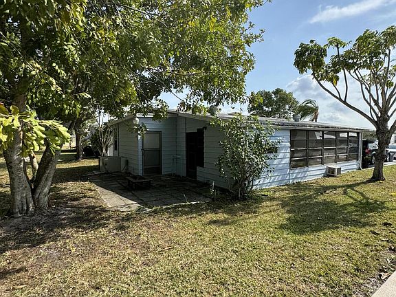 Home priced to sell. 2 bedroom 2 bath home. Homes has front screened porch, side Florida room and 2 sheds. Laundry room is inside. Home backs up to very private wooded area. House is a fixer upper and is being sold AS IS. Private golf course,(free to play) 2 Swimming pools, gym, tennis, shuffleboard, pickleball, Bocce, aerobics, pool tables, arts/crafts, grass cutting, trash pick up No HOA fees Land Lease fee only. All reasonable offers considered!