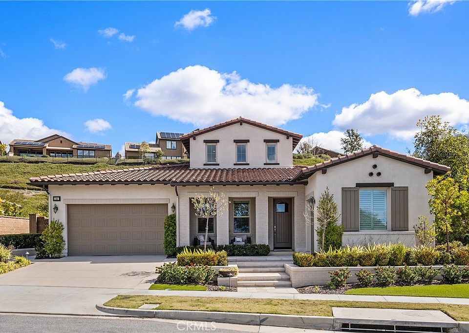 Welcome to your dream oasis nestled in the quiet and picturesque Alondra 55+ neighborhood of Esencia in Rancho Mission Viejo! This impeccably designed home boasts the perfect blend of modern luxury and timeless charm. The open concept design allows for seamless flow living, connecting the living, dining, and kitchen areas and making it the perfect place to entertain family and friends. The expansive kitchen, a culinary enthusiast’s delight, is adorned with top-of-the line stainless steel appliances, including a built-in refrigerator and a large kitchen island, complete with a wine fridge, granite composite sink, custom overhead lighting and can easily seat 5 for casual dining. Anchored by custom cabinetry, the dining room offers a more formal setting, providing plenty of storage and buffet counter. The family room, with cathedral ceilings and clere story windows, provides abundant natural light and a glimpse of the moon on a clear night. Tucked behind the kitchen is the walk-in pantry and laundry room. Custom design details include light hardwood floors in the main living areas that are soft underfoot and plantation shutters throughout that add a timeless elegance to each room while providing versatility of light and privacy. The primary bedroom suite offers the utmost comfort and privacy with a spa-like bathroom that includes double vanities and dressing counter, walk-in shower, linen cabinet and walk-in closet. Although this home lives like a single level, venture upstairs to discover an unexpected gem – a second-story loft with a powder room that can be transformed into a home office, media room, or even an additional guest space. Accessed through folding patio doors, the expansive backyard is an extension of the home, providing a perfect balance between indoor and outdoor living. Step outside into your own private paradise, where a sparkling pool awaits on those sunny days. The California room, complete with its own fireplace, surround sound speakers and plantation shutters, offers a perfect retreat for cool evenings or a relaxing afternoon in the shade and is equipped with a motorized screen. Enjoy alfresco dining under the custom aluminum pergola and harvesting fruit from your own trees. Two car garage plus an NEV garage. Enjoy the RMV lifestyle...for more information about what Rancho Mission Viejo has to offer, click on this link: https://www.ranchomissionviejo.com/ranchlife
