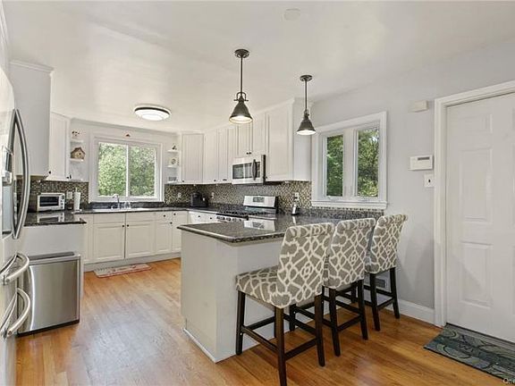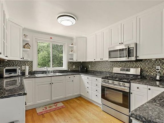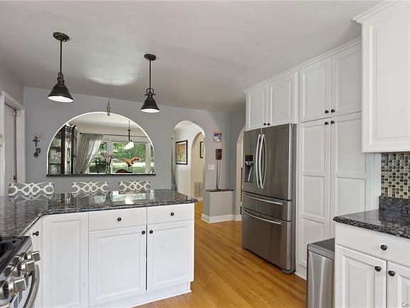 Beautiful Center Hall Colonial features 4 bedrooms, 2 baths on .57acre. Upon entering the home you will encounter inviting arched doorways. The main level offers kitchen with granite countertops, S S appliances and plenty of counter space, opens to formal dining room. Bright and airy living room with wood burning fireplace. Family room with glass sliders open to oversized deck, perfect for entertaining with lots of privacy. Large Master bedroom with walk-in closets and master bathroom. 3 additional bedrooms and updated guest bathroom with 6ft Jacuzzi soaking tub. Additional 1200sq ft finished walk out basement boasts an additional family room, play area, office den and plenty of space for storage. Hardwood floors and crown molding throughout the home. On-demand water heater, updated furnace and central air. Two car garage. Suffern Schools.