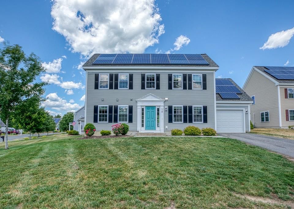 Great location, energy efficient construction, and plenty of upgrades! Spacious Entry with closet and Half Bath nearby. Bright and open kitchen offers quartz counters, tile backsplash, stainless steel appliances and Brazilian cherry flooring. Open to the kitchen is the living room: bright and airy with vaulted ceiling and has access to the brick patio via glass sliding door. First floor primary bedroom en-suite bath and walk-in closet. Upstairs you'll find two additional bedrooms...one with a large walk-in area, ideal for storage or a private workspace. A full bath with upgraded fixtures completes the upstairs. 4 mini-split systems offer comfort in all seasons and low energy costs, natural gas hot water and leased solar panels! The one-car garage offers storage space and has pull down stairs to access the garage attic. This home is a wonderful alternative to condo living with a small yard to maintain, short driveaway and no association fees! Showings begin Sunday June 28 by appointment