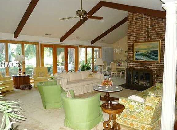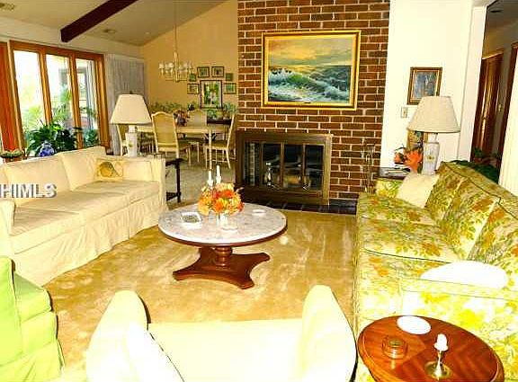 Walk to the beach, double fairway golf view! Single story home w/ formal LR, w fireplace, DR, wet bar. Eat in kitchen w/ double ovens, pantry & work desk. Spacious master, walk in shower & many closets. 2nd guest room used as den w/ fireplace. Carolina Room, laundry/utility room, craft room/office. Picture perfect indoor & outdoor living space, brick courtyard patio, mature, low maintenance landscape. Vaulted ceilings, fans, sky-lights, many closets, 2- car garage. 2,389 sq. ft, half acre+ lot. Community beach house, oceanfront pool, tennis, playground, leisure trials, 24 hour security. #(0809121)