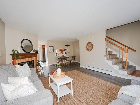 SHOWINGS START FRIDAY 3/24/23 AT 12 NOON. Highly desirable Bradford Woods is the setting for this amazing townhouse with 4 floors of living space, including a spacious walk-out basement. A lovely light filled living room with wood burning fireplace greets you as you enter the front door. The kitchen has lots of cabinet storage space and plenty of counter space for cooking prep. Upstairs you will find 2nd floor laundry closet, two large bedrooms, including the primary suite with features its own bathroom. A third story loft space with 2 skylight windows is perfect for a home office, family room or an extra bedroom space if needed. In the lower level you'll find a large rec space and a wall full of closets for extra storage as well as a slider that overlooks wooded space behind this unit. Quick closing possible.