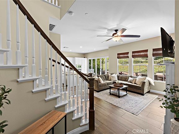 Charming Sendero 3-bedroom, 2.5-bath residence offers 2,033 square feet of thoughtfully designed living space, plus a versatile den perfect for a home office or guest room. Step inside to soaring high ceilings, a curved staircase and an inviting open floor plan that seamlessly connects the spacious family room with a cozy fireplace, the dining area, and the modern kitchen. The spacious kitchen is the focal point, featuring sleek quartz countertops, a generous island with seating, and a sunny breakfast nook ideal for casual mornings. Enjoy indoor-outdoor living with bi-fold doors that open to a charming patio retreat, complete with a built-in gas fire pit, fountain, and space for outdoor dining—perfect for entertaining or relaxing under the stars. Upstairs, the primary suite is a true sanctuary with ample space, a spa-inspired bathroom boasting his and hers quartz top vanities, and an expansive walk-in closet. Two additional bedrooms and a jack and Jill bath are located nearby, along with a large separate laundry room for added convenience. The home has a solar system, electric car plug and lots of storage including a work bench in the garage. Enjoy the amazing amenities that Rancho Mission Viejo has to offer including multiple pools, work out facilities, parks, hiking trails and convenient proximity to shopping and restaurants. Located directly across from the Sendero community pool, gym, and park; this home offers the perfect blend of comfort, style, and location.