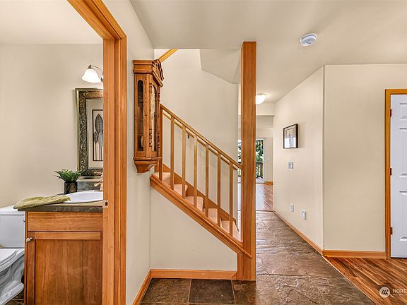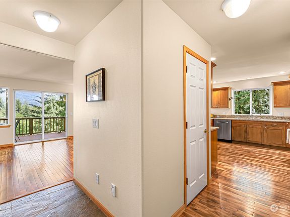 Gorgeous 4 bed, 3.5 bath home, partial Lake Whatcom and Stuart Mountain views, 2 blocks to trail that overlooks Lake Whatcom, few blocks to Stimpson Family Nature Preserve, and near Lookout Mountain. Brazilian Cherry hardwood floors throughout main level, new interior carpet and paint, radiant floor heating and cozy fireplace. Dream kitchen with new SS appliances, soft close cabinets, granite counters, and walk-in pantry. Deck off main living area to enjoy incredible sunrise views. Primary bedroom includes walk-in closet. Large bonus room on the lower level with access to side yard and fire pit. Community amenities include golf course, marina, 2 pools, fitness center, trails, parks, lake access, and dog park.