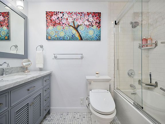 Full Bath upstairs w/ tub/shower combination and w/d located between the two bedrooms. Half bath is downstairs.
