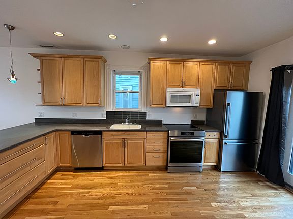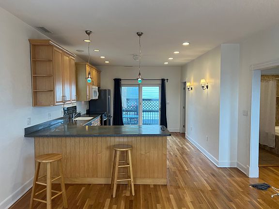 This is the upper two floors of a two-family house in Jamaica Plain on a nice residential street .The unit has an open concept floor plan with a lot of light on the second floor and with bonus rooms of a mudroom/laundry and office. The third floor has two bedrooms and a large closet. There are new appliances. There is a large deck off the kitchen for Al fresco dining and additional landscaped yard space and you own vegetable garden plot. It is a perfect space for working from home with a separate private office in addition to the bedrooms. The unit has one large bathroom on the second floor and basement storage. There is street parking which is rarely crowded. There is no fee. Available in March. Pets considered. The apartment is legally deleaded and kids are welcome. The apartment is near two Orange line MBTA stops and buses.