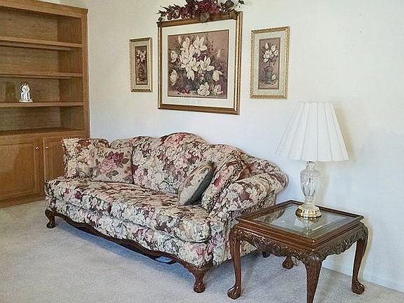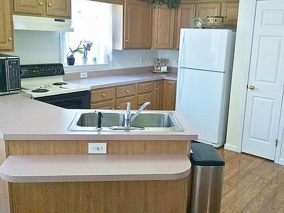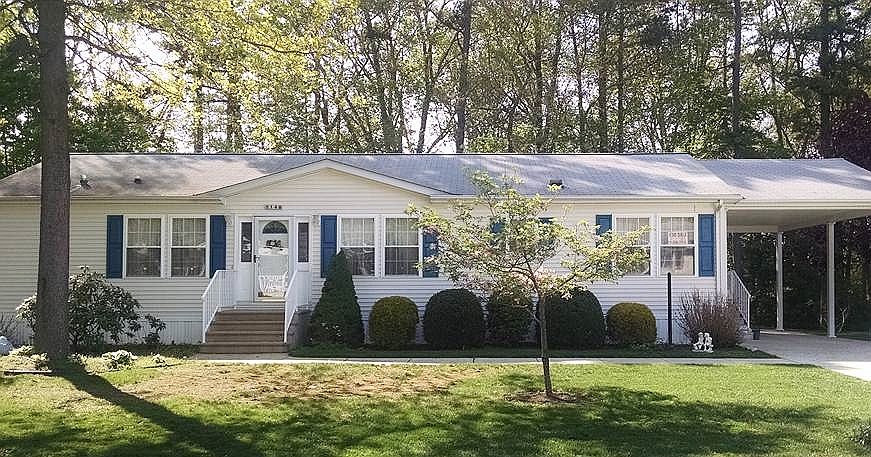 Backing up to a small patch of woods, this home is well appointed and sits on a charming lot. The Clarion is an open concept featuring two bedrooms, two full baths, eat-in kitchen, formal dining room, formal living room, den off the kitchen, 10'x16' three season sun room, a 16'x26' car port, 8'x12' storage shed, and an underground irrigation system. Excellent window count adds plenty of natural light to the kitchen. Facing east, the front of the home receives morning light. Inside, flooring is in excellent condition! Hard woods floor in kitchen, Berber carpet in den, plush carpet in living/dining and bedrooms, and vinyl tile in hall and bath. All appliances are included! Washer, dryer, refrigerator, dishwasher, and range. Don't miss the chance to view this immaculately kept home. Whether you are looking to move to a retirement community or just right size your life, move to a Jensen Community and Get In On The Good Life!®