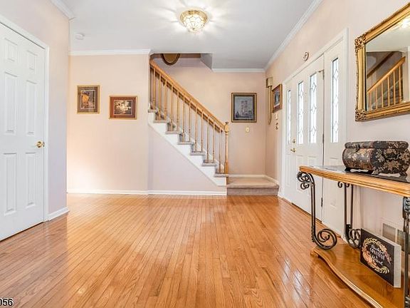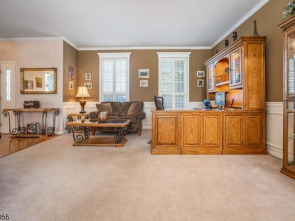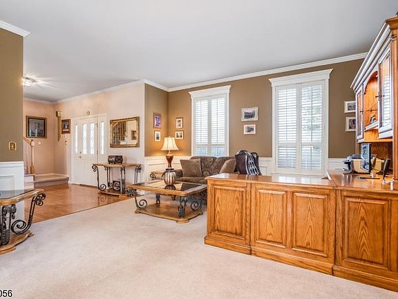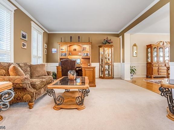 Beautiful colonial home situated on a level lot in Sky View Estates. Paver walkway leading to covered entry opens to formal living room with crown, chair rail & picture frame moldings. Columned entry to formal dining room that features hardwood floors, crown, chair rail and picture frame moldings. Dining room opens to an updated kitchen with granite counters, tiled backsplash and pantry. Dinette has slider that leads to a deck that opens to a paver patio overlooking an in-ground gunite pool (resurfaced in 2014), hot tub & fire pit. Dramatic two-story family room with vaulted ceiling, fireplace and wall of transom windows. Office, powder room, laundry room and direct entry to 2-car garage complete the main level. Second level has master bedroom suite with 2 walk-in closets, master bath with skylight, soaking tub, separate shower and granite dual vanity. 3 additional bedrooms and main bath complete the second level. Finished basement with recreation room, media room and full bath provides additional living space. Great home in desirable 35-lot subdivision with public water and natural gas. Situated in close proximity to Clover Hill Park & recreation area, shopping, historic downtown Flemington and major commuting routes.