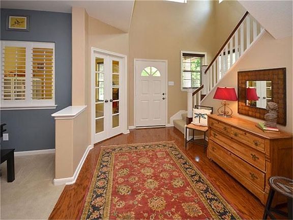Charming cottage-style 4 bedroom,one owner home w/brick and Hardi exterior in sought-after family-friendly neighborhood.Welcoming front porch,island kitchen,study w/fr doors,2-room master suite,4th bedroom or gameroom.Hardwoods down,rounded sheetrock corners,media built-in,stereo prewire,custom closets. 2car w/8' extension,pool-sized backyard w/flagstone patio,full sprinklers.Close schools,parks and community pool.