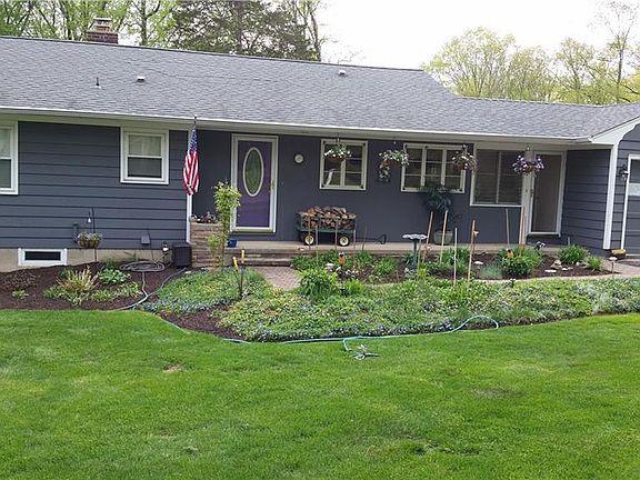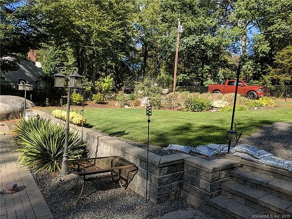 This charming well maintained ranch is at the end of a quiet cul-du-sac. The home is situated on over an acre of fenced landscaping with gardens, patio, pool, cabana and a shed for garden storage. Elevated land allows views of Candlewood Lake and marina. Beyond the covered front porch there are two front entrances, one into the main area the other into a breezeway/mudroom. Tiled kitchen leads to a long dining room & living room with wood floors, stone fireplace and built-ins. Also on the main level are 2 bedrooms and full bath. Lower level provides a 3rd large bedroom with tiled floor, brick fireplace views of Candlewood Lake, tiled full bath, partial kitchen and walk out to the patio. There is a new liner for the salt water in-ground pool and recent landscaping of the surrounding grounds. Updates include a new central vac & 2 year new washer & dryer as well as a new 30 year GAF warrantied roof. The fenced pools secluded environment and pool house are landscaped, lighted and provide a suitable vacation-like feel to the back ground of the lake.