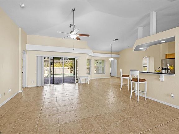 4 bed, 2 bath pool home embodies the coveted SW Florida indoor-outdoor lifestyle. Abundance of natural sunlight creates an inviting atmosphere. The wide-open floor plan, adorned with large tile throughout, seamlessly connects the great room, flex area and kitchen, making it perfect for entertaining and everyday living. A wall of sliders in the great room opens to the spacious lanai, where a sparkling pool awaits. The owner's suite boasts dual closets. The ensuite bath is a spa-like sanctuary with a soaking tub, dual vanities and a walk-in shower. Each generously sized guest room ensures that everyone has their own comfortable space. Roof (2019) provides peace of mind for years to come. Ideally located in the popular NW Cape Coral area, this home is just moments away from shopping, restaurants and schools. Enjoy quick access to Gulf beaches, Pine Island, Fort Myers and Port Charlotte Airports, making your daily commute or weekend getaways a breeze. Don't miss the opportunity to own a slice of paradise. Start living the SW Florida lifestyle you've always dreamed of!