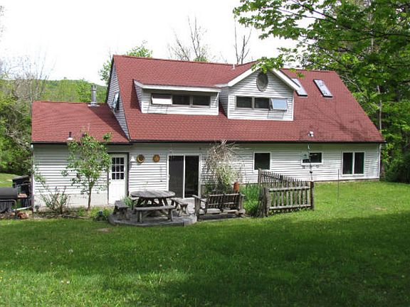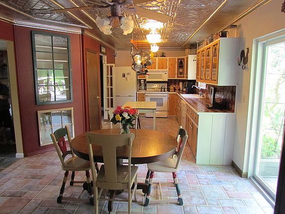 Charming expanded Country Cape built 1982 w/artist-designed renovations throughout! 240 sf open flr plan Country Kitchen, tin ceiling, tile backsplash + floor. LR w/gas fireplace w/river rock and granite and 100+ yr old hand hewn mantle. Two tile baths w/ radiant heated floors, Raku tile, stained glass. Familyrm w/skylts. and veranda w/motorized awning.Vermont Castings stove, 100yr.old White Pine flrs, storage closets galore. Country cottage in the woods is an ideal retreat only 2 mi to RR.