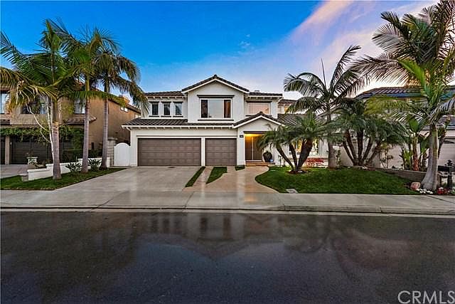 Meticulously maintained and contemporary touches! Nestled within the prestigious guard-gated community of Ocean Ranch, this 4 bed, 3.5 bath, and 3 car garage residence is adorned with premium finishes throughout.? ENTIRE HOME WAS RE-PIPED W/ PEX plumbing in 2020, newer AC units/furnace, travertine flooring, new upstairs carpet, recently painted interior and exterior, Moen Flo smart water valve, Ring alarm system, LED lighting/smart light switches, water-conserving toilets, high-efficiency plumbing fixtures and much, much more! Stunning entry into the open concept living and dining rooms with soaring double story ceilings and grand staircase. The seamless floorplan opens into the chic gourmet kitchen bursting with an abundance of natural light. Ample cooking and storage space, gleaming stainless steel appliances, center island, and breakfast nook overlook the spacious family room with fireplace, ideal for casual and stylish entertaining. First-floor master retreat and gorgeously remodeled spa bath feature newer windows, romantic fireplace, sitting area, and private entrance onto the backyard terrace. Three oversized bedrooms (one is currently being used an office/bonus room) and 2 full baths complete the top floor accommodations. Enjoy indoor/outdoor living as you entertain in the lushly landscaped backyard featuring 3 separate patios. Ocean Ranch amenities include a pool, playground, basketball court & 24-hour security. Only 2.5 miles to the sparkling Pacific Ocean!