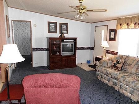 GREAT HOME! PARK LIKE SETTING! GREAT LOCATION! Nothing to do but move into this spacious 3BR, 2BA ranch home in Northside Heights Community. Open concept, eat-in kitchen, appliances and upgraded oak cabinetry. Dishwasher is 3 yrs. young, updated faucets in bathrooms & kitchen. Master bedroom suite has walk in closet, separate vanity, tub & shower. Relax & enjoy the scenic views of the Blue Mountains from either the front or rear yard. Landscape lot that backs up to woods for added privacy. $350/mo. Lot rent incl. water, sewer, garbage & use of community pool & other facilities. Call to see it today!