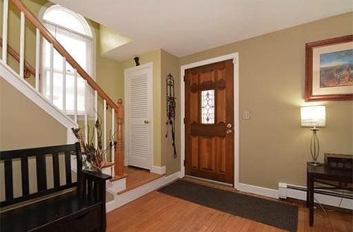 Roslindale Garrison Colonial abuts JP Bourne area on a quiet cul-de-sac. Lovely living room with wood burning fireplace is open to the dining room with glass doors to deck, 4 good size bedrooms and 1 and 1/2 baths. Heated mudroom/office. Finished basement room has electric "wood" stove for heat, Nice sized yard with patio right off deck for entertaining. Wonderful layout and setting. Good closets and storage. 1st Showing open house Sunday 2-3pm.