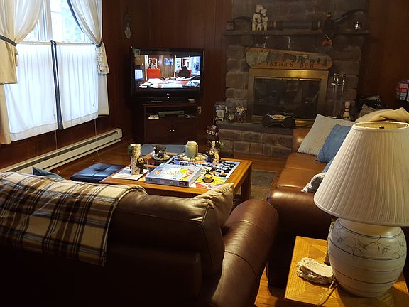 This 4 bedroom, 3 bath home with game room is located within the lake resort of Split Rock. This home features individual zoned electric heat, large game room, master bedroom with 3/4 bath, fireplace, fire-pit, off street parking for over 6 cars, and hardwood/tile throughout. The resort amenities can be used for a small HOA yearly fee (some are pay as you go) which include beach, pools, boating, indoor water park, 18 hole golf course, bars, restaurants, and mini golf. This home is located minutes from Big Boulder and Jack Frost Ski areas. The home can come fully furnished as it is currently being used as a successful AirBnb.