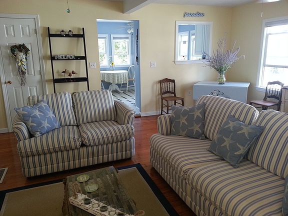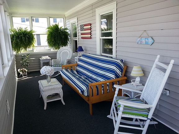 Bright and sunny 3 bedroom Ranch with peeks of the Atlantic and a short stroll to Sunrise Beach! A 24' enclosed porch and 16' sitting room with ceiling fans enhance this move in ready, year round home with gleaming original fir floors throughout. Large living room, bright kitchen and spacious master bedroom also boast ceiling fans to enhance the cool ocean breezes. Totally remodeled bathroom, new hot water tank, new water line and gutters. 1st floor laundry and dry basement. Landscaped and fenced yard round out this family home NOT in a flood zone.