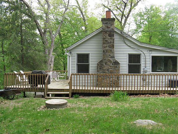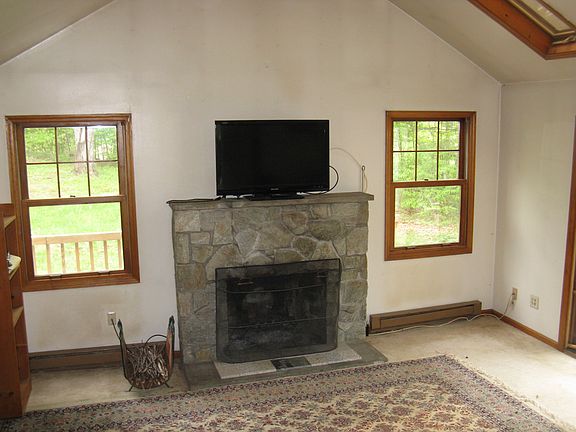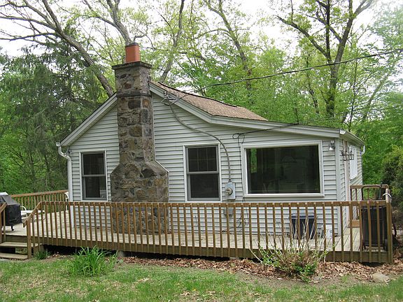 This home is in really nice shape. Open flow, nice size rooms, very private even though it is a one bedroom there is a nice office area with a walk out on the lower level. Beautiful STONE fireplace in the living room, with sliding glass doors to a wrap around deck and skylights and cathedral ceilings. Large eat-in kitchen, large master bedroom with a walk-in closet and a second closet. Off the kitchen is a large full bath. The lot to the right of the house offers a great deal of privacy but I don't think it can be built on since it is small and steep. Lots of privacy...room to add on to the left of the house. Level lot. Enjoy nearby fishing, swimming, boating and sailing this summer from your new home right to the Lake! This can be rented $1350 per month for 1 year total $16,200 yearly