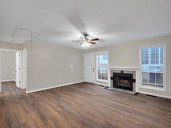 Charming townhome in prime location! Welcome to this beautifully updated single-level townhome, nestled in a peaceful cul-de-sac providing low maintenance living. This 3-bedroom, 2-bath home boasts stylish updates throughout, including brand-new luxury vinyl plank flooring and fresh, modern paint, making every room feel bright and inviting. The open living room is anchored by a wood burning fireplace. A charming breakfast/dining area connects with the kitchen. Stainless steel appliances, freshly painted cabinet, quartz countertops and subway tile backsplash make this kitchen a dream! The primary bedroom is set to the back of the house with a private en-suite full bath. The split floor plan has the two additional bedrooms to the front of the home, complete with ceiling fans and generously sized closets. The updated bathrooms have contemporary fixtures and finishes, ensuring comfort and style. Don t miss the convenient stackable laundry. Step outside to enjoy the private, fenced-in backyard - perfect for relaxation or entertaining - or unwind on the screened-in porch, a cozy spot for morning coffee or evening gatherings. With its prime location, you ll enjoy easy access to nearby schools, shopping, and quick freeway access for smooth commutes. Easy living in this community with yard work done by the HOA. This turnkey home combines convenience, privacy, and modern comfort - come see it today!
