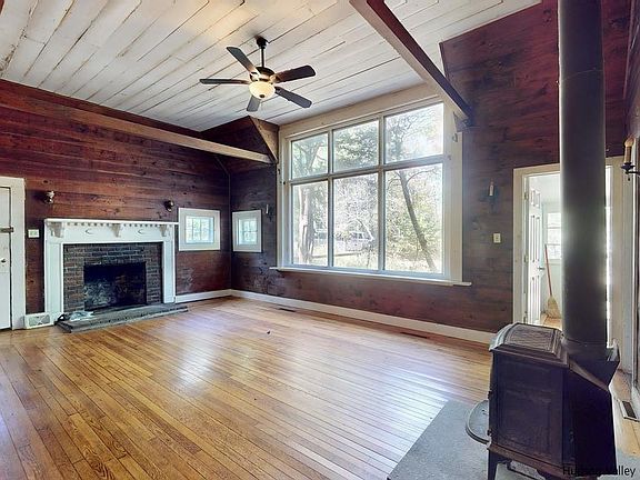 Woodstock Hamlet - Nestled in the woods yet steps from Woodstock's shops, galleries, restaurants and nightlife. Circa 1930 2 bedroom, 2 bath home features a living room with vaulted, beamed ceiling and the iconic north-facing windows artists use for diffused light. Worth the work needed to improve to your modern standard. Possibilities abound on this great parcel on a quiet, non-through side street. Zoning allows multi-family residential units and by-right uses in addition to residential. All this in the most famous small town anywhere, where the Hudson River Valley meets the Catskill Mountains--with world-class natural beauty, outdoor recreational resources, arts, culture and cuisine all in one very special place. This is your chance to become a part of it!