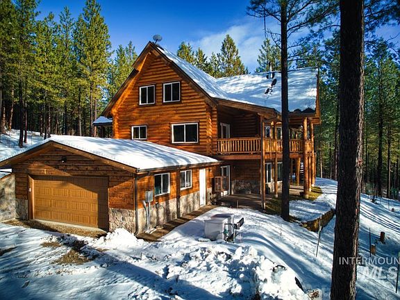 This custom log home is designed for comfort & entertaining. Nestled in trees on corner lot in premier subdivision. Featuring rich pine walls, knotty alder doors, log accents, artfully crafted wood & epoxy countertops surrounding copper sinks in kitchen & bathrooms. The main living room offers a cozy woodstove with vaulted ceiling. The log stairs lead to a loft living area with a bedroom & two flexible rooms that can serve as bedrooms or offices. The lower level has another large rec living area with beautiful 10' wet bar. Relax in the hot tub & immerse yourself in the natural surroundings. Enjoy covered decks perfect for gatherings plus 2 fire pits (wood & propane). 16x24 heated & insulated detached shop + 10x12 wood shed is included along with a whole-house generator & reverse osmosis filter in the kitchen. The exterior logs have recently been stained. There are newly planted decorative trees around the property. Visit the quaint, historic Town of Crouch just a couple miles away. Easy drive to Boise.