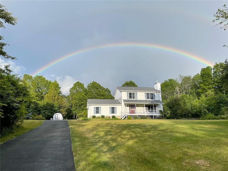 For sale for the first time by its original owners, this beautifully maintained colonial is located on a gorgeous private property described by friends as "Shangri-La" - a private paradise. Entering into the property you are instantly hit with the beauty of the residence and its architecturally designed landscaping. The property is situated on a very private 5 acres - the residence is not visible from the road. Exceptionally maintained by its owners, there are gleaming hardwood floors located throughout the home. The main floor features an open concept floor plan with a large family room that is open to the dining room and kitchen. The large family room has a gas fireplace with large windows to the private front yard and beautiful backyard. The master bedroom features stunning views of your property. Large two car garage and driveway offer plenty of parking. There is a relatively new roof (2019), Central AC (2019), hot water heater and heating system (2019). The large full unfinished basement is bone-dry. Enjoy the beauty of your property from the oversized open ground level deck.