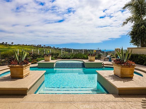 COASTAL ELEGANCE - Panoramic views are the backdrop for this exquisitely remodeled rare single-level residence. This property, previously a model home, is located on one of the most sought-after expansive pool lots within the prestigious gated community of Siena. Upon entering through the stunning, custom double doors, one is immediately presented with an uninterrupted view of the tranquil pool, hillside, and ocean in the distance. Open the glass-paneled walls to embrace an al fresco experience, seamlessly integrating indoor and outdoor living. This setting is ideal for hosting events or enjoying serene moments. The reimagined open concept floor plan flows effortlessly from the living room, family room, dining area and chef’s kitchen. The kitchen includes stone counters, sit down island, walk in pantry and six-burner Dacor range, certain to delight any culinary enthusiast. Custom-designed millwork with open display shelving separates the living room and family room, highlighting a double-sided fireplace and temperature-controlled wine storage. In the expansive primary bedroom, wake up to a stunning view through the large glass sliding doors, then enjoy the spa-inspired ensuite with a luxurious soaking tub, glass shower, custom cabinetry, and designer tile and stone. The secondary bedroom is spacious with an impressive 3/4 bathroom featuring upscale stone and tile. The third bedroom, which is open and abundant in natural light, is presently utilized as an open office. Plank wood flooring offers cohesion and warmth throughout, paired with soaring ceilings, elevated finishes and custom designed lighting, the perfect ambience is always attainable. Outdoors enjoy a private, solar-heated pool with sunset views for relaxation and entertainment. The open side yard is a grassy area suitable for planting or gardening. Residents of Siena appreciate exclusive access to a private community pool, spa, and cabana. In addition, Marina Hills Community offers a competition-sized pool, spa, clubhouse, and tennis and pickleball courts for one’s enjoyment. Experience luxurious resort living with the exceptional amenities of Marina Hills and the scenic beach trail leading to the renowned Salt Creek Beach, Waldorf Astoria and Monarch Beach Golf Course. Welcome to the sophisticated beach lifestyle of Laguna Niguel.