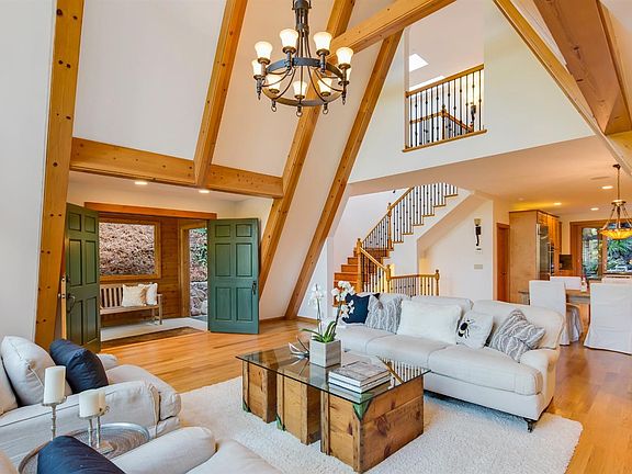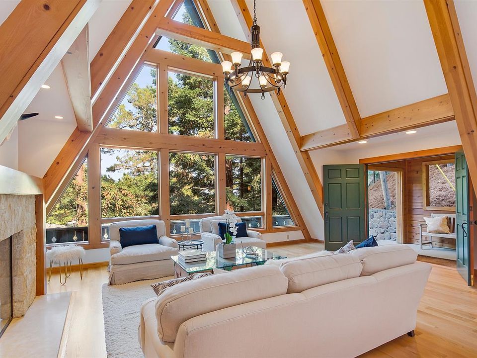 Enchanting, one-of-a-kind, property on private ~18,000sqft lot w/magical retreat-like setting, waterfall, pond, outdoor frpl, meandering stone paths, gazebo & more. Masterfully crafted, remodeled A-frame home at end of a cul-de-sac in desirable Gerstle Park. 3BD/3BA+ Media Rm. Dramatic, grand scale living room w/floor to ceiling windows & frpl opens to large kitchen/dining area. Romantic master ste w/walk-in closet & frpl. Sun Valley school.