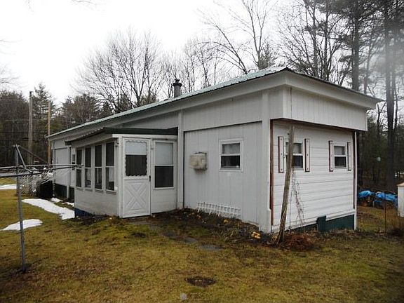 Manufactured home on a 7 acre lot along side a brook. Detached 1 car garage with pull down stair for 2nd floor storage. Very well kept 2 bedroom, 1.5 bath with a wood stove in den. Vaulted ceiling in large living room which opens into the eat-in kitchen w/tiled backsplash. New elec stove & new refrigerator & stacked W/D inc. 3 season room overlooks private wooded back yard. Replacement windows throughout, new metal roof in '08. Cash buyers only!