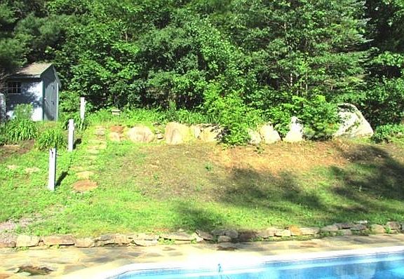 STAYCATION WITH YOUR OWN POOL and walk to Sturbridge shops and restaurants from this neighborhood location! Charming 4 BR Cape with in ground pool and town services. Updated open floor plan showcases large Dining Room with striking bow window and hardwood floors, sunken front to back fireplaced Family Room with bright picture window, hardwood flooring and eat-in Kitchen with wide pine flooring, sought after granite counter tops, artistic tiled back splash and slider to private screened in porch with view of pool and back yard! Tiled full bath and two bedrooms round out this first floor. Second floor features two large bedrooms, one with custom built-ins, and room for possible future Bath expansion. Very private fenced in back yard with pool, shed and wooded area.