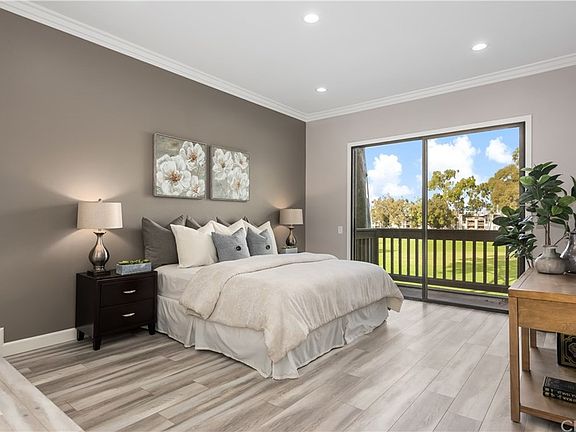 Expansive golf course & greenbelt views from each balcony and most windows in this stunning remodeled home. Enter foyer and enjoy the open floor plan with kitchen and dining room overlooking the main living area. Floor plan is ideal for everyday living, as well as entertaining family and friends. Step into the living room, where the elegant stone fireplace is the centerpiece of the room. Walls of windows flood the living space with natural light. Remodeled kitchen features new designer color cabinetry, quartz surfaces, new lighting and new stainless steel appliances. The third bedroom, with a closet, opens to the living area and could also be a home office or den. Enjoy your morning cup of coffee on the master suite balcony, overlooking the lush & expansive golf course view. Unwind in your luxurious remodeled master bath, featuring new dual vanity, crisp white, quartz surfaces, new lighting, new fixtures & over-sized custom tile shower. Master bedroom closet features a wall of mirrored wardrobes. Hall bath features new vanity, new lighting & fixtures, new tub & tile surround. Designer style floor tile finish each bath. Fresh paint and new hardwood style flooring add a sense of elegance throughout. Two car garage is just steps away. With all living on one level, this home is an oasis & perfect for first-time buyers or downsizing. Close to UCI and just a short walk to William Mason Park. Enjoy top rated Irvine schools, including University High. Welcome Home!