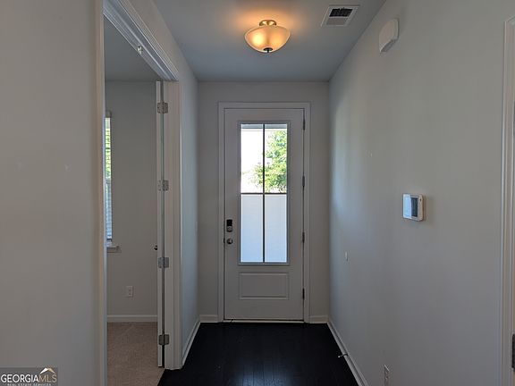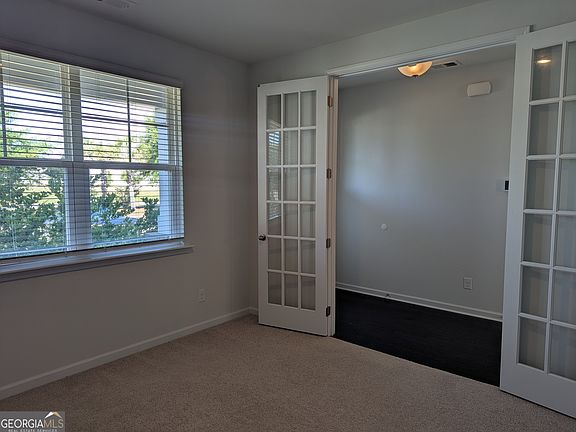 Located in beautiful gated Highland Square! Enjoy a view of the lagoon from your front porch. This home is in perfect condition, nice bright and airy. Kitchen features large island, granite countertops, stainless steel appliances and a large pantry. Beautiful hardwood floors in kitchen, foyer and dining room area. Carpet in all other areas and rooms. Study with french-doors off foyer, Four other rooms upstairs. Primary suite is large, with spacious closet, garden tub, separate shower and double sinks. The community features private amenities center, zero entry pool, front and side lawn maintenance is included, as well as washer and dryer. No pets please! Copyright Georgia MLS. All rights reserved. Information is deemed reliable but not guaranteed.