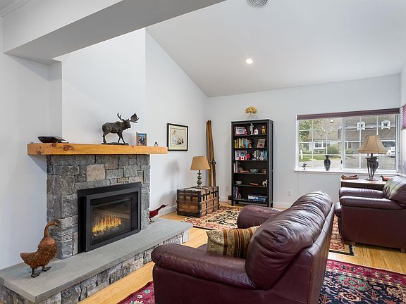 Just down the road from Lake Champlain is a beautifully renovated townhouse with 2 bed, 3 baths, and an unheard of backyard. Enter into the property and you’re greeted by vaulted ceilings and an open floor concept with bamboo flooring throughout, more recently painted walls, a newly constructed gas fireplace, a plethora of windows flooding the space with natural light, LED lighting, and an updated kitchen incl. stone countertops and a kitchen island that are white with streaks of blue. The new backsplash & appliances, and the new cabinets bring it all together! Off of the kitchen there’s a mudroom/hallway with washer & dryer and a door that leads out to the backyard. Additionally off of the kitchen, in the dining area the new glass slider opens up to the patio and backyard. There is a redone 1/2 bath on the 1st floor. The 2nd floor, also repainted, has new carpeting throughout other than in the baths which is tile. At the top of the stairs is the natural gas furnace & water heater, and each spacious bedroom has it’s own wonderfully redone bathroom with large tiled showers, ample closet space, natural light, and ceiling fans. The attached garage, with new door, leaves room for storage. There’s a storage shed, attached to the townhouse for easy access to a lawn mower, pots, and other yard items. Lake Champlain, the bike path, and Oakledge Park is 0.3 miles away. 2 min from City Market Onion River Co-op. 10 min from Burlington’s Church St. 30 Min to top skiing!