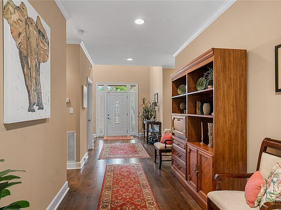 Beautiful 3BR/3.5BA hard coat stucco patio home near the gate for easy access. Primary suite on main with updated bath, hardwood floors, formal dining, and a spacious great room with fireplace. Updated kitchen features granite counters, stainless steel appliances, breakfast area, and wet bar. Two guest suites upstairs with private baths and walk-in attic storage. Enjoy two large decks—perfect for grilling, entertaining, or bird watching—set in a private, greenbelt-adjacent setting. Professionally landscaped with zoysia grass, paver walkway/driveway, 2-car garage + golf cart garage. Walk to fitness center and Oakridge Club.