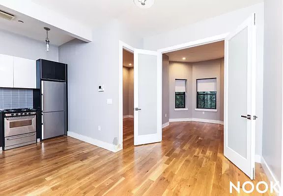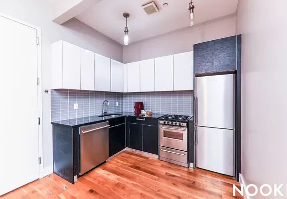 Newly renovated modern apartment. Open-concept kitchen/living room with hints of exposed brick, stainless steel appliances including a dishwasher, and nice stone countertops. 2 full-size bedrooms with nice windows, a modern bathroom, new hardwood floors, and high ceilings. The building has laundry, a backyard, and roof deck with amazing views. Right by Pratt University & the Bedford-Nostrand G area! Surrounded by bars, restaurants, cafes, gyms, and grocery shops!