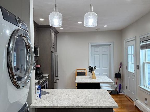 Pristine top floor 2 bedroom 2 bathroom, featuring central AC, In unit laundry, beautiful kitchen with dishwasher and island. Great layout with a spacious bedroom at either end of the apartment. Main bedroom features en suite full bathroom. Great closets throughout. Private side deck and driveway for 2 car parking included! Sorry no pets, no smoking. Great Savin Hill location near the JFK stop on the MBTA Redline 12 month lease Upon lease signing 1st, last and brokerage fee due Tenant pays utilities for apartment No pets, No smoking