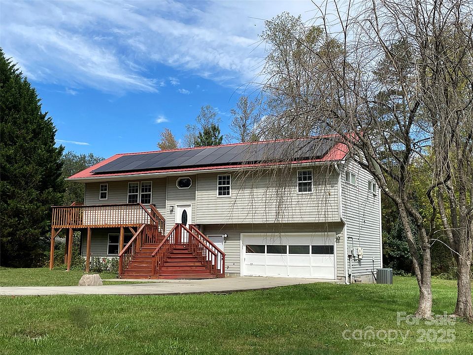 BRING US AN OFFER! We listened-TLC needed so we improved the price and who doesn't want utility bills of $16-$25/month?? No HOA - Short term rental allowed. This property consists of 2 adjacent parcels offering a huge level yard—ideal for play, pets or gardening. Step inside to an open, airy entertaining space featuring a cathedral ceiling great room—the perfect setting for gatherings or spreading out on your own. The lower-level bonus room is massive—use it as a group hangout, a guest retreat or convert it into an oversized bedroom. Solar Panels paid in full. Enjoy the peace and quiet of this neighborhood while conveniently located only 18 min to Asheville Airport and 25 min to DT Asheville. Access road directly across from Cane Creek Community Pool. Low-maintenance and high-enjoyment...