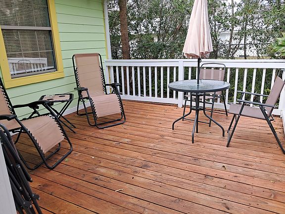 One-year rental. Charming furnished two-bedroom, one bath house in great location with large fenced yard and off-street parking on a quarter-acre lot. The light and airy house has central AC, washer/dryer, and a big sunny deck. Many mature trees, and large, private backyard on the property. Lawn care included. Quiet, serene spot in a historic area minutes from the heart of St. Augustine. Ideal for couple or single person. Walk or bike downtown or to the shops of West Augustine. No traffic congestion, easy access to highways and beaches. First month, last month, $1,000 security deposit due on signing. Tenant pays water and electric utility charges. Yard maintenance included in rent. Off street parking. Pets: cats, (1) small dog (under 22 lbs.) w pet deposit. No smokers, no smoking.