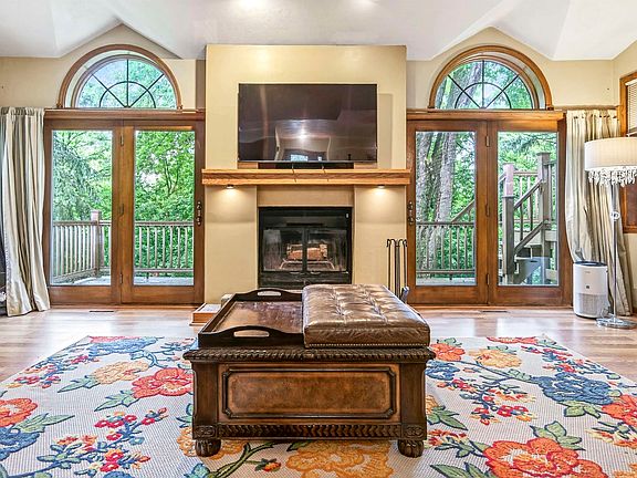 If you love open concept floor plans and spacious living areas, don’t miss this beautifully designed 3 bedroom, 3 bath ranch. The living room features soaring vaulted ceilings, and a natural fireplace surrounded by elegant French doors. The functional kitchen is complete with solid surface countertops and stainless steel appliances. Adjacent to the kitchen, the dining area opens to a multi level deck, overlooking a serene, tree lined backyard. On the main level, you'll find two generously sized bedrooms, a primary suite with a walk-in closet, a private ensuite bath and second full bath completes this floor. On the lower level, you find a third full bath, an exercise room, and a cozy family room with gas fireplace and sliding glass doors that open to the fenced backyard.