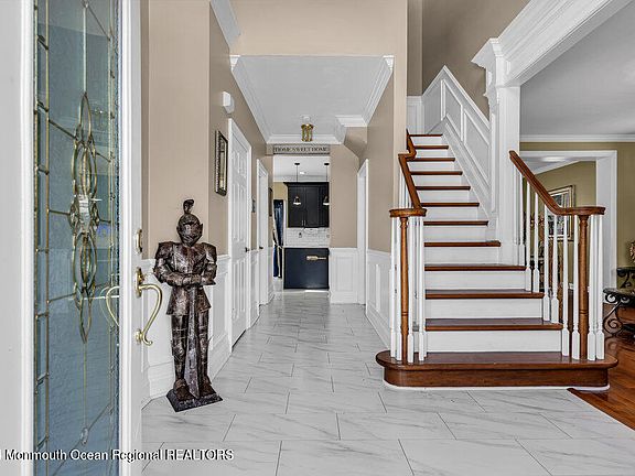 As you enter into the double story foyer you'll be immediately impressed with the attention and care of the owners. New upgraded tiles and moldings throughout. Formal living and dining room with hardwood floors and lots of windows. The recently renovated eat in kitchen has updated shaker cabinets, high end stainless steel appliances, beautiful granite countertops, tile backsplash and an island for extra work and storage space. Off the kitchen you'll step down into an airy family room with soaring ceilings with backyard views. Laundry room leads to a huge 2 car garage. Head upstairs to 4 nice sized bedrooms including The master suite with vaulted ceiling, walk-in closet and a big bathroom with shower stall and tub. Finished basement provides extra living space. Relax outdoors at the large saltwater pool or on the deck. All outdoor furniture is included. The roof, hvac system and pool liner are all newer, have been replaced in the last few years. DON'T WAIT! Make this Home YOURS!