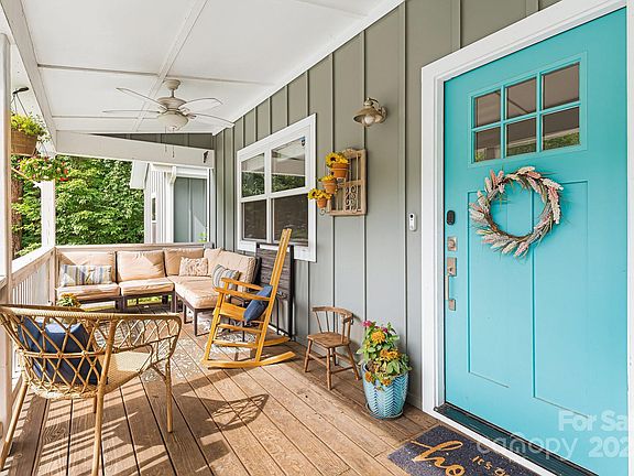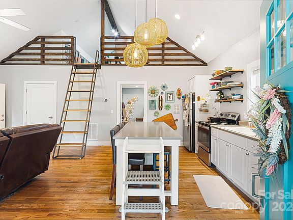 Welcome to 14 Springside Park, a charming 3-bedroom, 2.5 bath home in the heart of Asheville, NC. This captivating residence offers approximately 1,328 square feet of thoughtfully designed living space, ideal for families and outdoor enthusiasts. Inside, vaulted ceilings and an open floor plan bathed in natural light create a warm, inviting atmosphere. The natural oak hardwood flooring adds modern elegance and durability. The unique loft space serves as a versatile area for a home office or creative studio with unique false bookshelf drawers. The backyard is a paradise for kids and adventure seekers, featuring slack lines, hammocks, climbing wall, and an in-ground trampoline. The expansive patio is perfect for outdoor dining and entertaining. Located in the highly desirable neighborhood of Oak Forest, 14 Springside Park offers easy access to top-rated local schools, scenic parks, shopping and dining. Experience the perfect blend of comfort, style, and outdoor fun in this must-see home.