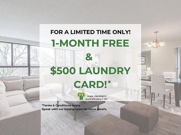 - Special offer! Special Offer! Get 1-month free rent, on select suites -