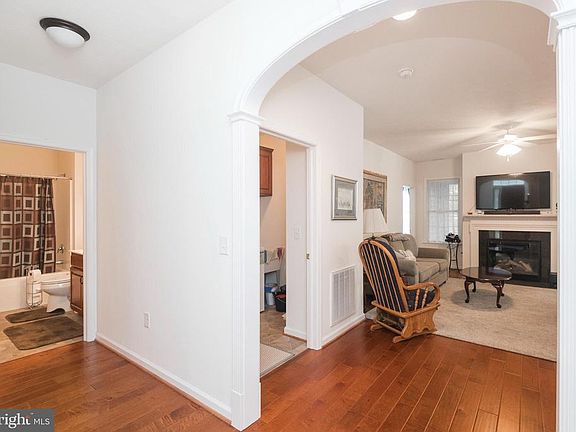 Welcome home to the beautiful 2 bedroom 2 full bath detached twin Adirondack model home in desirable Stoner's Farm. This open floor plan makes entertaining easy while preparing food in the large kitchen and remaining part of the fun and conversation in the expansive gathering room. Large windows provide plenty of natural light to the dining area which also provides easy access to the veranda where you can enjoy BBQ or relax on these hot summer days and evenings. Inside, the generously sized gathering room offers a marble gas fireplace and TV which is included for your pleasure. The master ensuite includes a large full bath with his and her vanities, separate shower and large walk-in closet. The garage walls are painted & dry-walled with pull-down stairs for easy access to attic storage along with a utility closet where the furnace and hot water heater are located. This home is a complete package and ready for a new owner.