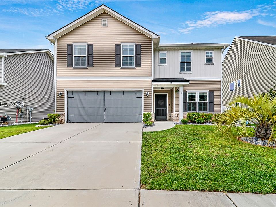 Beautifully maintained Scarlet floorplan, built in 2020 by Smith Family Homes. 1st floor with study off the foyer and flow-through living/dining/kitchen area. The spacious primary suite includes separate shower/tub and oversized walk-in closet. 3 generously sized BRs and Bath upstairs. Screened porch addition with vinyl windows can be enjoyed year-round. Large, fenced backyard with space for outdoor entertaining. Conveniently located 15 min to Savannah and Old Town Bluffton. Approx. 35 minutes to Beaufort and HHI. Amenities offered are a clubhouse, zero entry lap pool, fitness facility, playground, and 3.4 Mile Linear Trail!