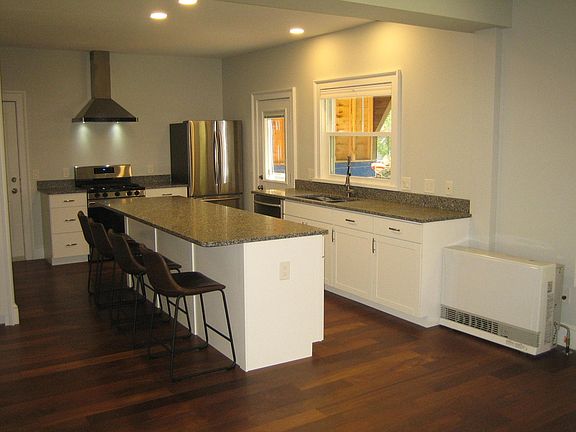 Newly renovated 1st floor apartment, granite countertops, new appliances, gas stove, dishwasher. Beautiful solid wood Chestnut floors through out. Laundry room with storage in unit, 2 bedrooms with large closets. Bathroom with 4 foot shower. Large private 16 x 20 deck off kitchen. 2 onsite parking spots included. 632-5947 No Smoking Tenant pays gas heat and lights. Month to month rental agreement is also available