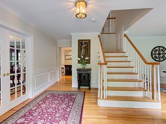 Stunning custom-built 4-6 bedroom, 3.5 bath colonial on cul-de-sac featuring 2x6 const., 9' ceilings, beautiful millwork & many updates! Newer 2010 Chef's kitchen with custom cherry cabinetry, induction cooktop w down draft, double ovens & 9' expanded bar & 2 pantries. Vaulted family room w fireplace & skylights that opens to mahogany deck & flat backyard. Formal living room & dining room w double sets of French doors. Great mudroom/laundry off the deep 2 car garage w lots of storage. Beautiful master suite with attached office/nursery, dual walk-in closets & brand new master bathroom with Carrera marble shower, counters & heated floors with stand alone tub. Two-three more bedrooms w updated bathroom. Third floor is a great au-pair / in-law suite w private bath. Walkout lower level w bedroom, game & workout rooms. NEW carpet & paint. Town sewer. Surrounded by acres of privacy. Enjoy sidewalks to town; 5 min to MBTA! Covid gloves/masks req. Offers due Tues @ noon.