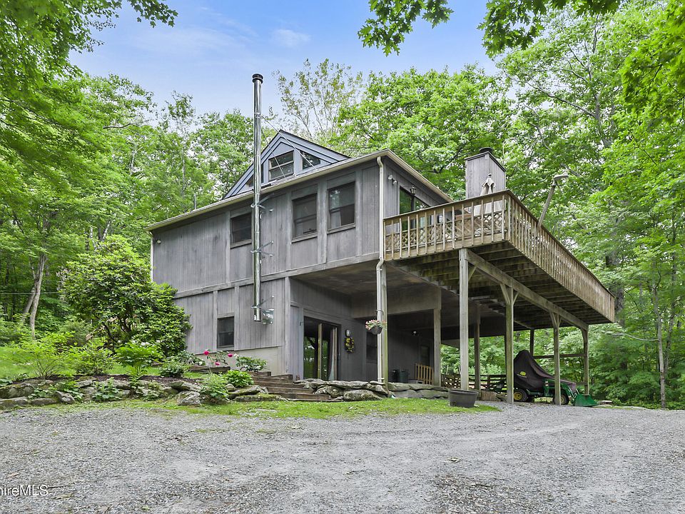 Privately perched in a lovely, forested Tyringham neighborhood, this well maintained 3 bedroom, 3.5 bath contemporary home includes a separate den/office and a spacious family room. The open living/dining/kitchen area is flooded with natural light thanks to a vaulted ceiling, skylights, and multiple sliding glass doors, which open to a massive deck with screened porch at one end. The grounds are nicely groomed, with a bonus shed in the back yard, originally built for chickens! With a 4 year new septic system and most of the furniture available for purchase, this is a move-in ready mountain retreat, just waiting for its next happy owner.